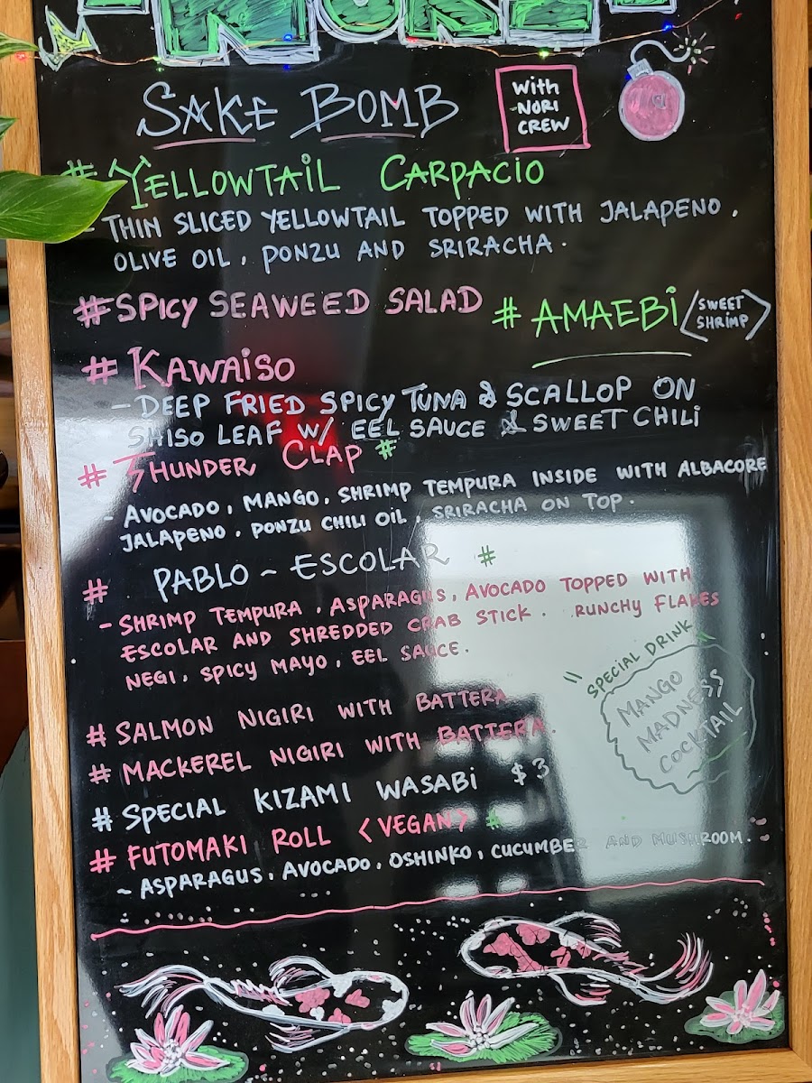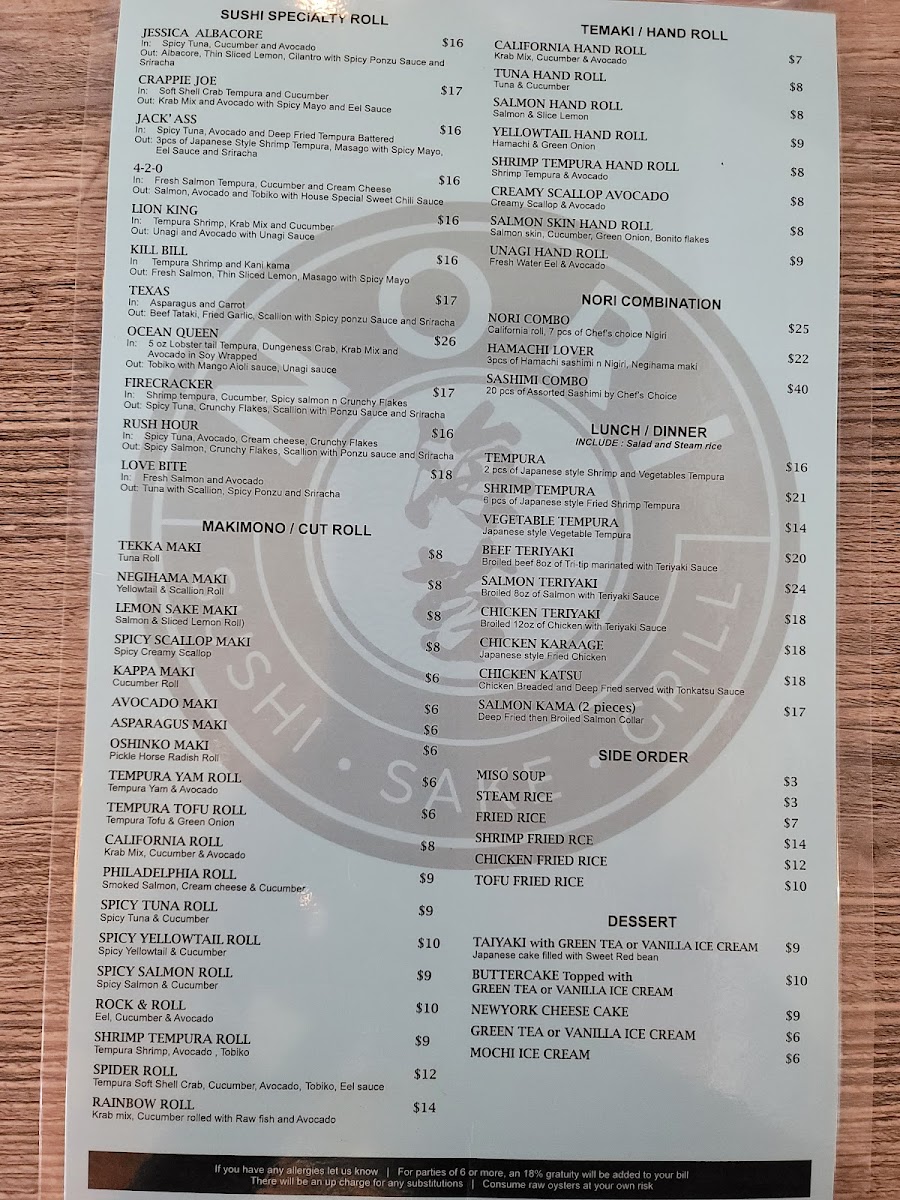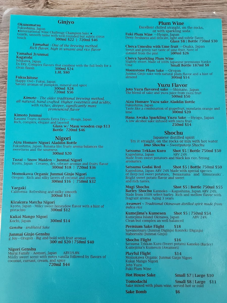 Saba served as either nigiri (2 pieces) or sashimi (8-10 pieces).