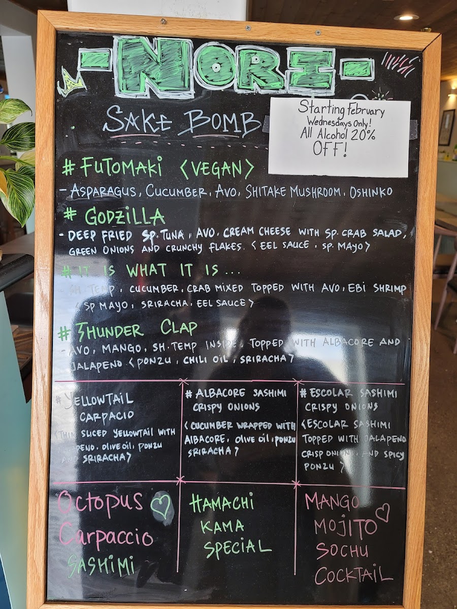 Escolar, thinly sliced, available as nigiri or sashimi portions.